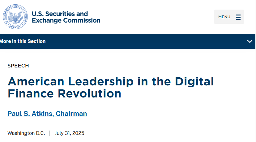 The SEC Chairman, Paul Atkins, gave a speech yesterday on the role the United States is to play going forward. Here are the key points: