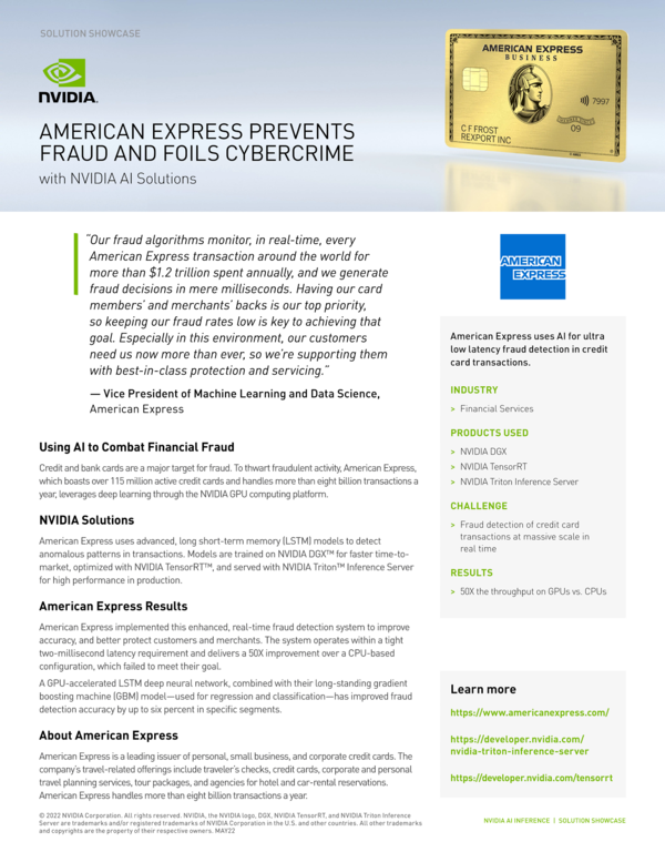 In all three cases, in the training area, we excel in inference of machine learning models. We've built a suite of libraries we call Triton, which is part of Nvidia AI Enterprise also. Triton simplifies the work of inference by allowing you to inference on a CPU-only server or on a machine learning model on a CPU-only server or on a GPU-only server with the same code base. Your development team doesn't have to support multiple code base.